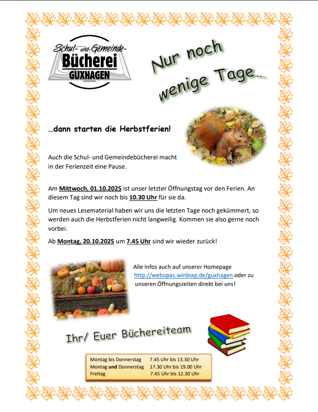 Freitag: 8.00 – 12.00 Uhr