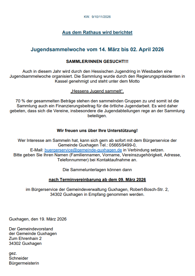 * Für den Besuch der Gemeindeverwaltung vereinbaren Sie bitte einen Termin.