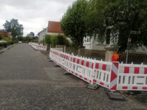 „Die EAM muss in Bereichen der Grifter Straße, Gartenstraße, Aueweg und Sandweg neue Stromkabel verlegen. In Vorgesprächen haben sich die Gemeinde Guxhagen und die EAM mit der ausführenden Firma geeinigt, dass nicht nur der Teilbereich des Gehweges erneuert wird, wo die Leitungen ausgetauscht werden, sondern dass der Gehweg in kompletter Breite einen neuen Belag erhält. Damit bei evtl. späteren Eingriffen der Asphaltbelag nicht wieder aufgebrochen werden muss, wird dort ein Rechteckpflaster verbaut. In diesem Zuge werden auch gleich die Masten der Straßenlampen ausgetauscht und die Beleuchtung, auf LED umgestellt, wo bis dahin noch keine Umrüstung erfolgt ist.